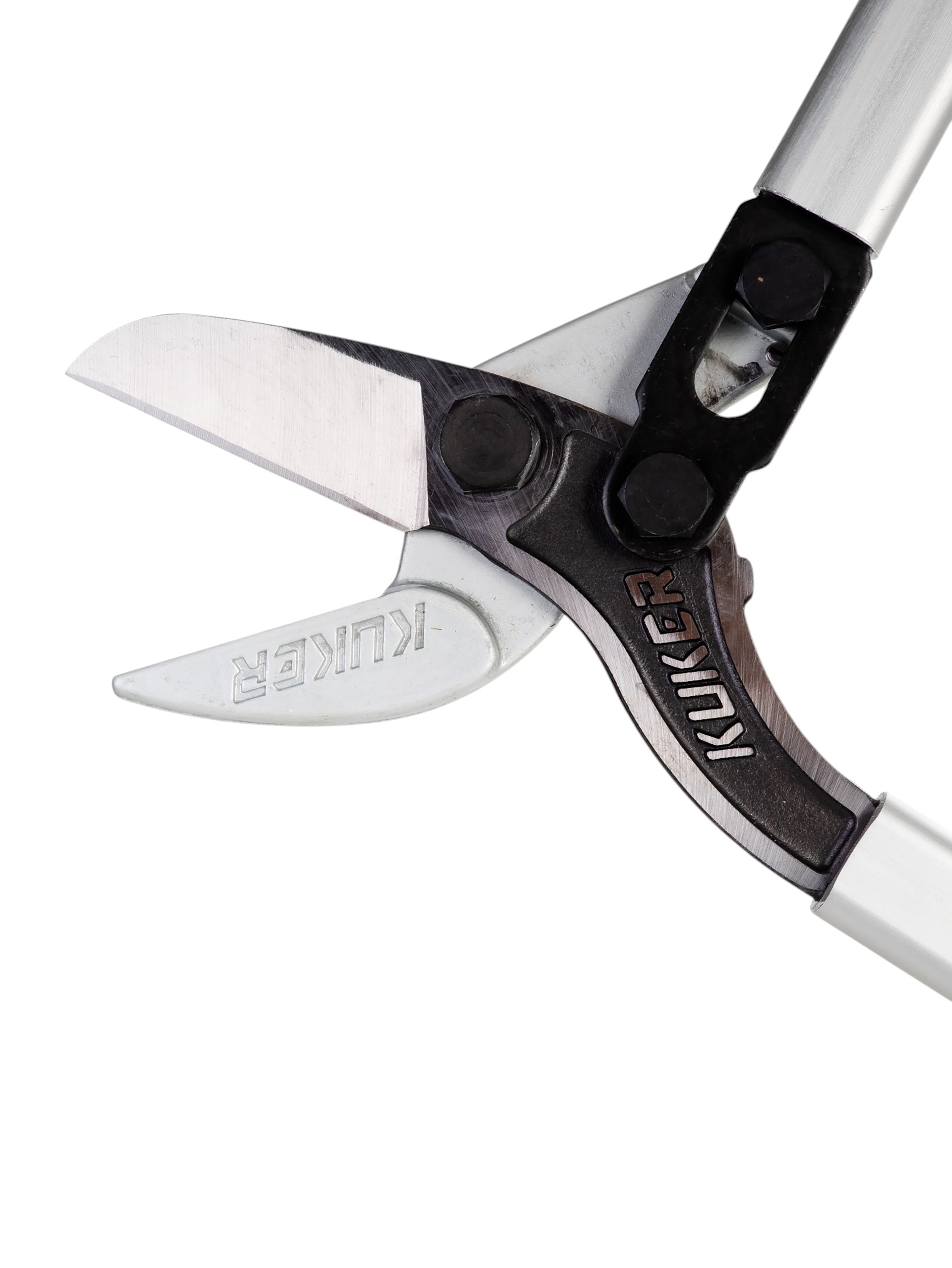 Двухшарнирный рычаг, позволяет обрезать более толстые ветки с минимальными усилиями.